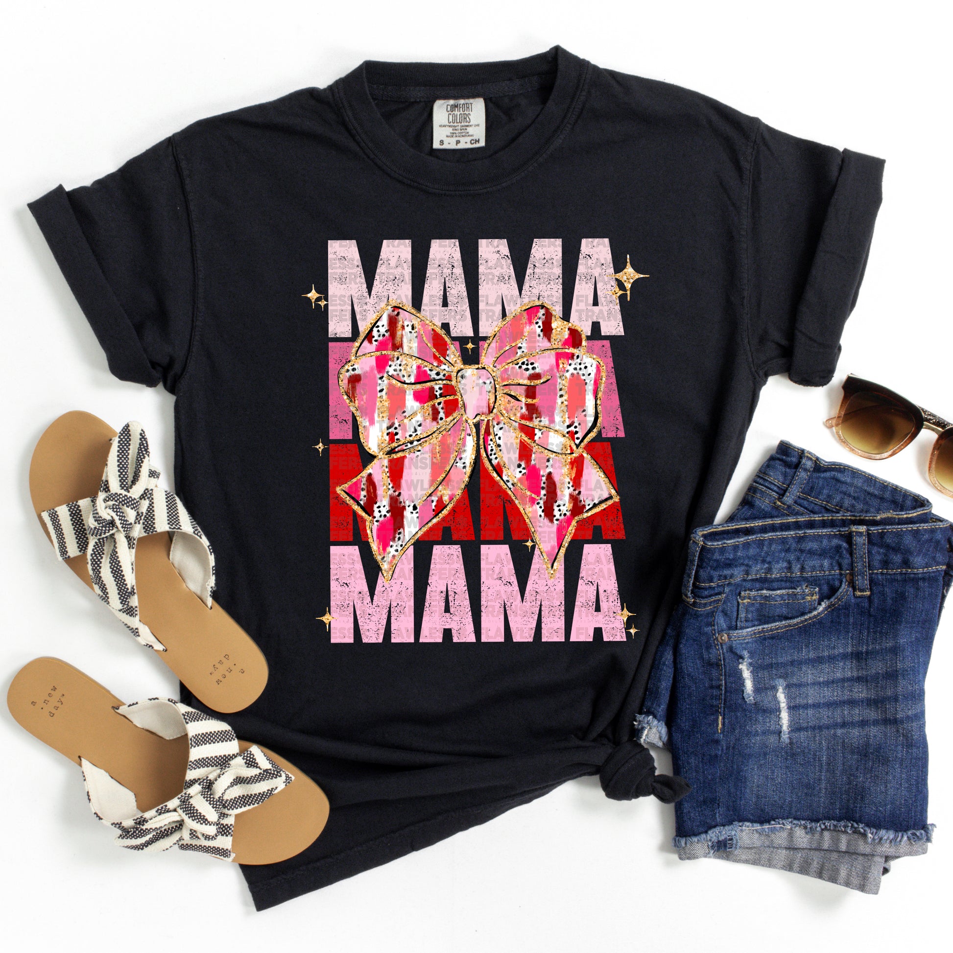 Mama Stacked Red Pink White Brushstrokes Coquette Bow DTF Transfer