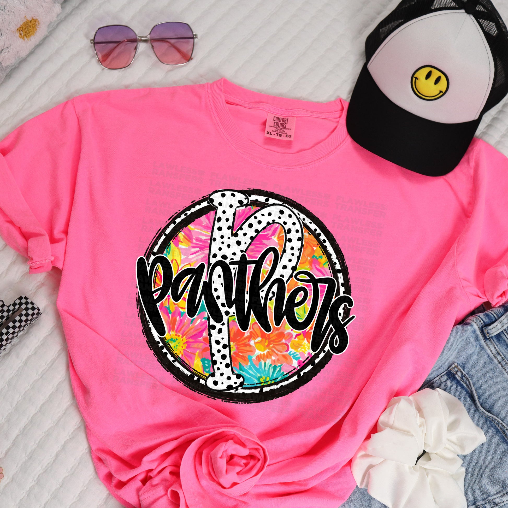 Panthers Bright Tropical Floral Doodle Letter Dalmatian Dots DTF Transfer